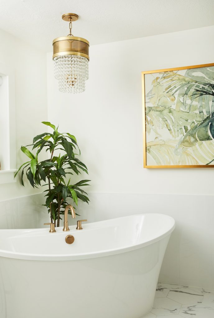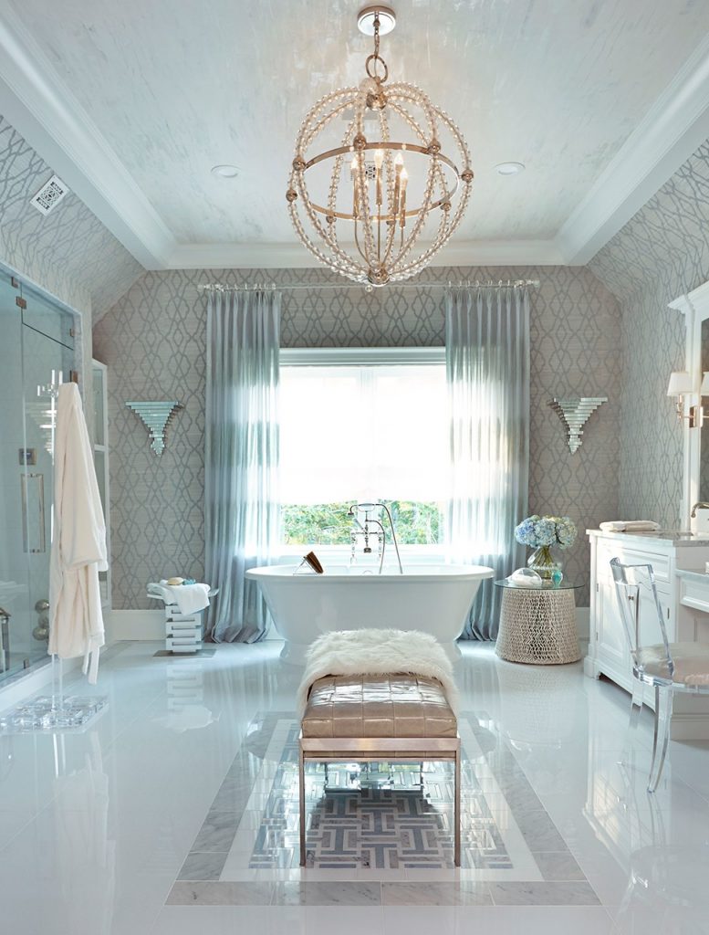 Want a more understated room with just a touch of glitz? You can still lounge in luxury as you soak beneath a dazzling chandelier.