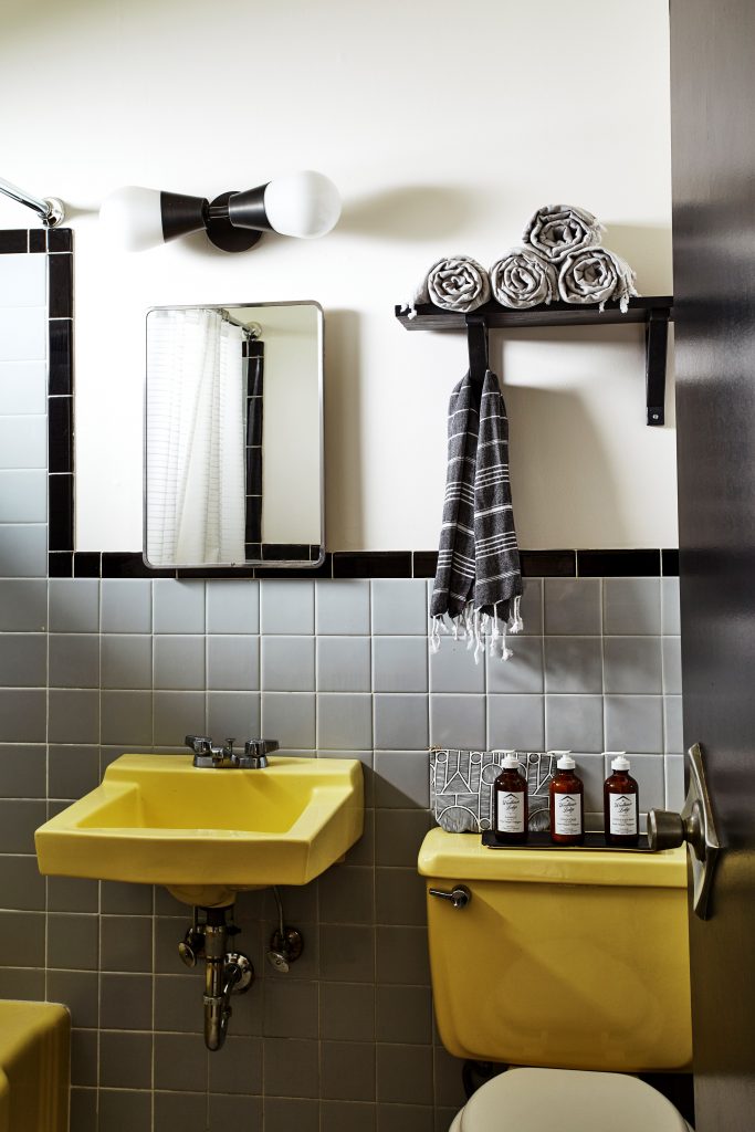 If you’ve got some fun color elsewhere, like this vintage yellow toilet and sink, that’s great! This black fixture blends with the style and lets the colorful toilet and sink truly shine.