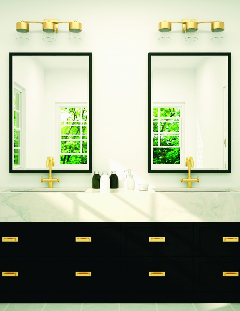 Make any vanity look luxe with gold features. Coordinate your drawer handles, faucets, and light fixtures for a put-together feel. Especially when paired with simple blacks and whites, these accents really shine!